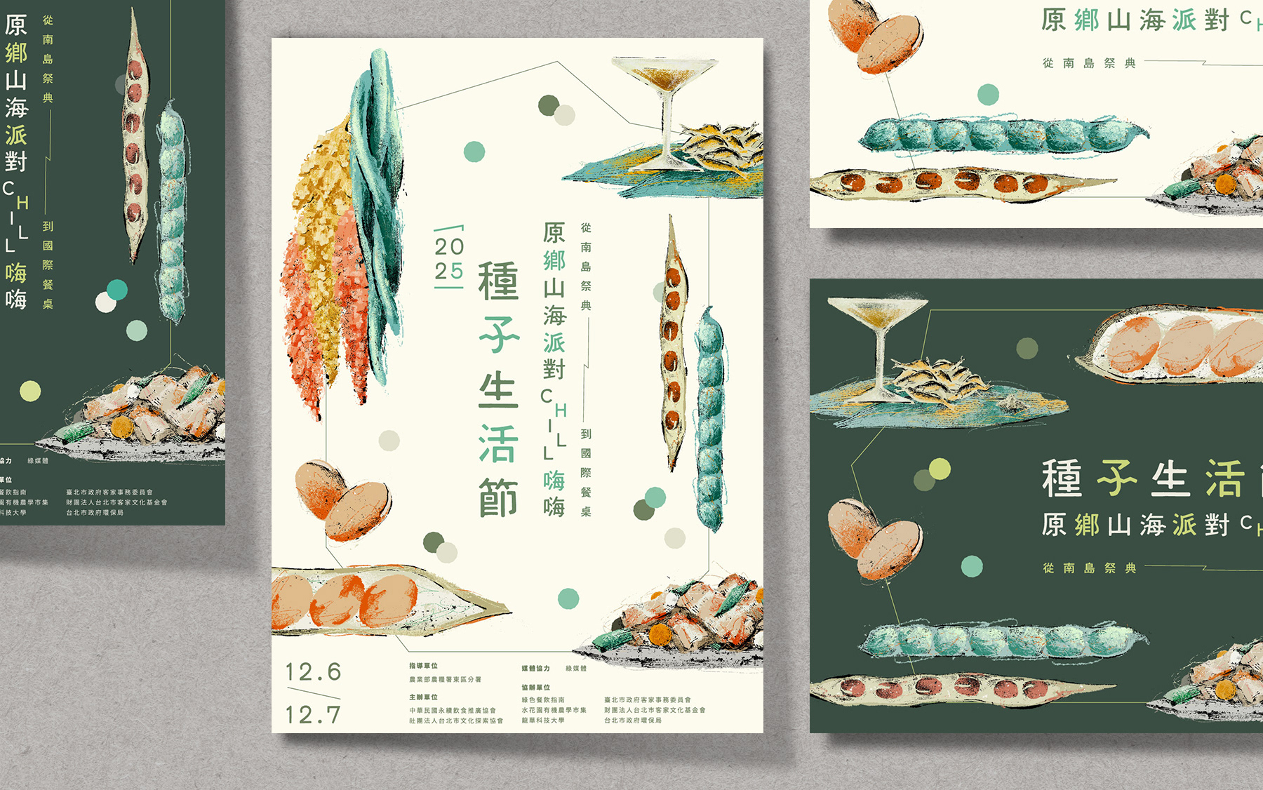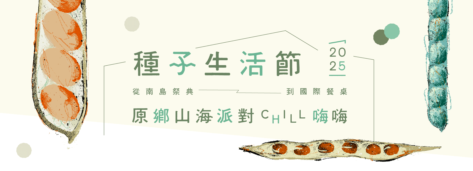 〈種子生活節〉為分享在地飲食文化、台灣豆及雜糧的活動。豆類與雜糧因為營養價值高,碳足跡低,逐漸成爲全球關注的未來糧食。台灣原住民族群世世代代耕種紅藜、小米、樹豆、飯豆、豇豆、花豆、紅豆等多樣雜糧,不僅形塑了島嶼的生物多樣性,更孕育出與土地共生的飲食文化與祭儀智慧。